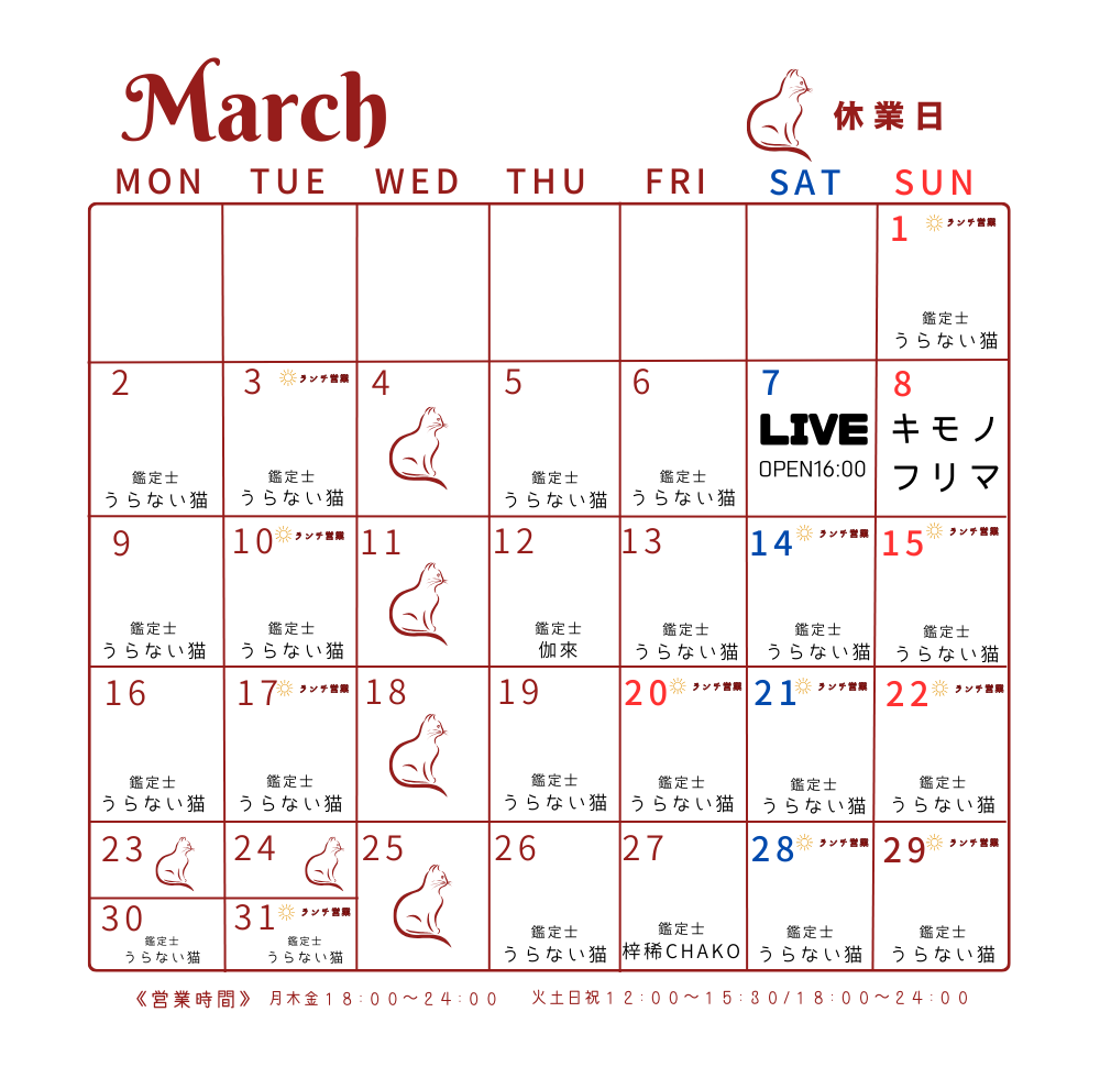 21日(土)通常営業(鑑定士うらない猫)